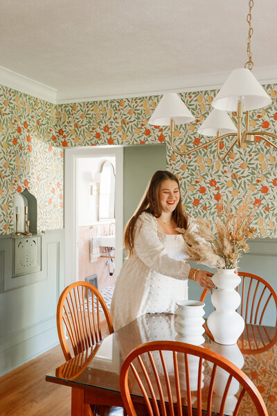 For this refresh, we partnered with out-of-state clients looking to upgrade a home for their daughter—elevating builder-grade basics with custom finishes while honoring the vintage charm of the neighborhood. The design needed to feel rooted in the home’s character yet offer the functionality of a modern-day layout. From the kitchen and dining room to both bathrooms, our focus was on material upgrades, optimized flow, and thoughtful storage. Pops of green, warm tones, and classic silhouettes tied the spaces together in a way that felt both nostalgic and new.